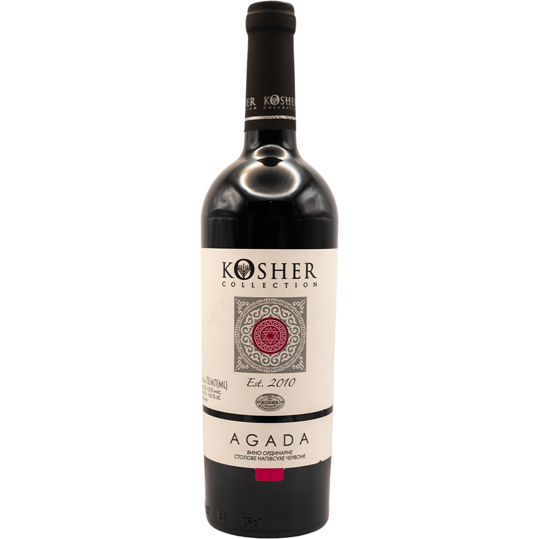 "Agada" Kosher wine red semi-dry wine is made from Cabernet Sauvignon and Saperavi grape varieties. The wine has a bright ruby color, aroma with tones of wild rose, rose and cherry. The taste is fresh with light tones of chocolate.