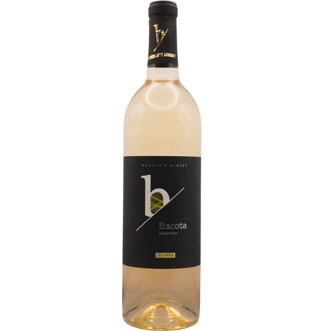 "Bacota Johaniter" Bohdan's Wine is a white dry wine. The aroma of wine is bright with notes of peach and floral tones. The taste is light, with good acidity.