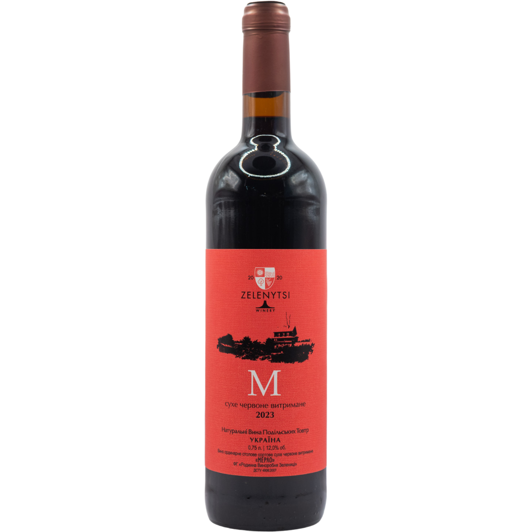 "M 2023" from the Zelenytsi family winery is a dry, aged red wine made from Merlot grapes, aged in oak barrels. The aroma of the wine is rich in notes of currants and plums, with shades of vanilla. The taste is rich, with a full texture, soft tannins and a little acidity. It is best suited for beef or tomato paste dishes.