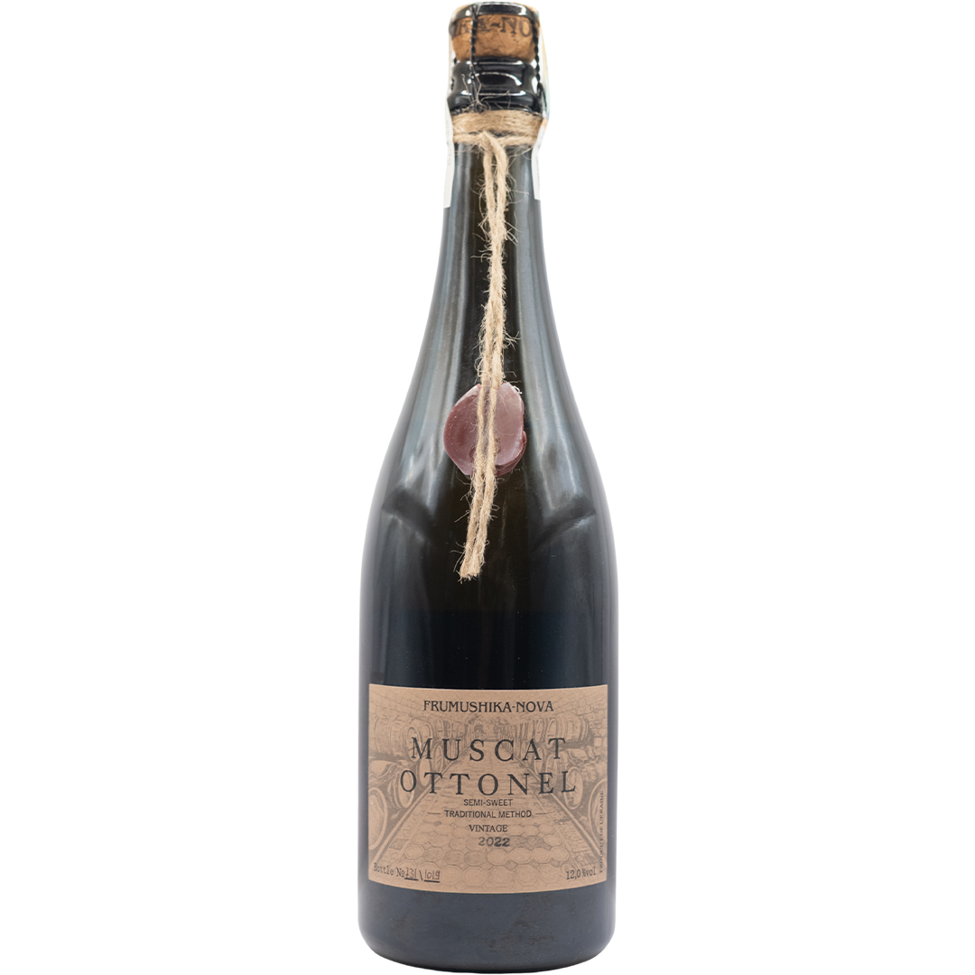 "Muscat Ottonel" from the Frumushyka Nova winery is a white semi-sweet aged sparkling wine made according to traditional technology with aging on sediment. The aroma contains muscat tones, as well as citrus and floral notes. The taste is fresh, balanced, with a pleasant sweetness and a long taste.