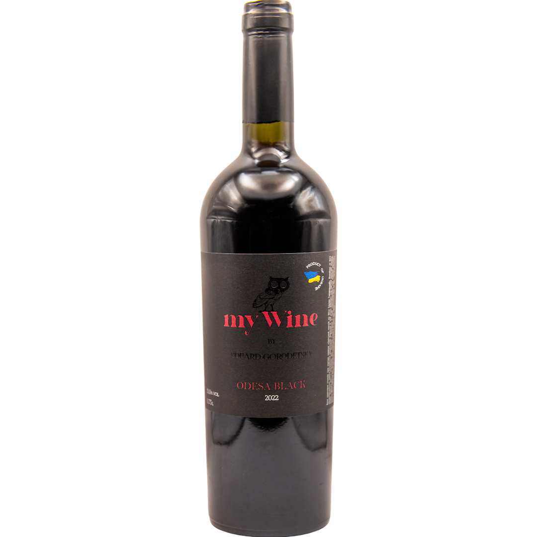 "Odessky Black" from the winery "My wine EDUARD HORODETSKY" is a dry red wine from the Ukrainian grape variety Odessky Black. The wine has an extremely rich aroma of black and red berries, with notes of jam and a rich tannic taste with a tart berry aftertaste.