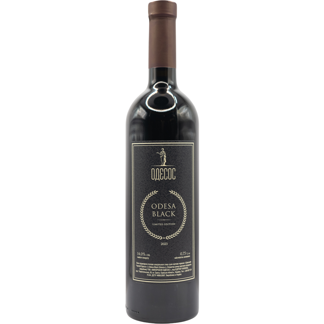 "Odessa Black" limited edition from the winery Odesos is a dry red wine. It has a bright aroma of black berries with shades of mulberry and shades of smoke. Harmonious wine with a rich taste, well balanced, tastes like shades of red fruit.