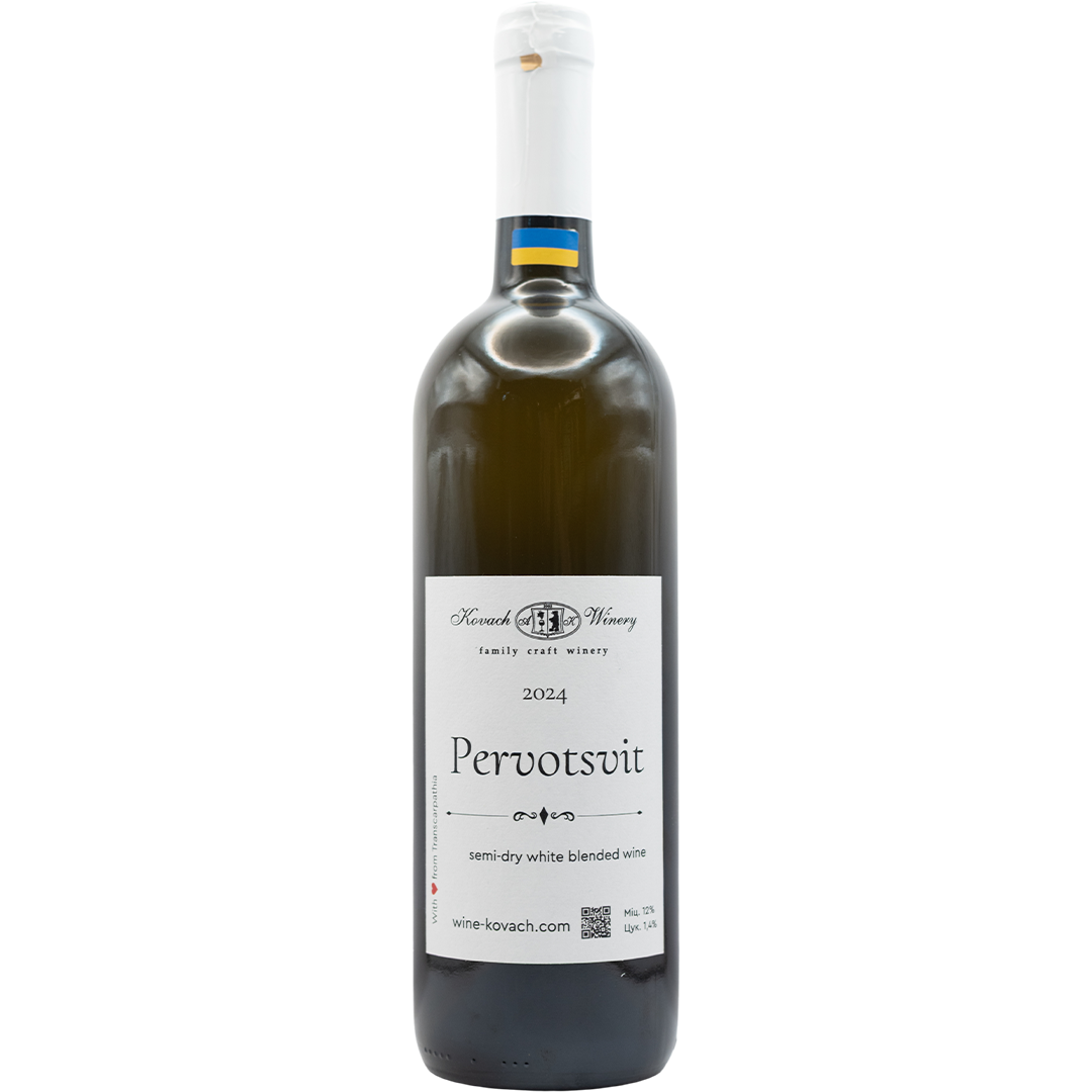 "Pervotsvit" from the Kovach Winery is a white semi-dry wine made from Traminer and Muscat Holodryga grapes. The wine is aromatic, with notes of duchesse, white flowers, tropical fruits and muscat. The taste is balanced and soft.