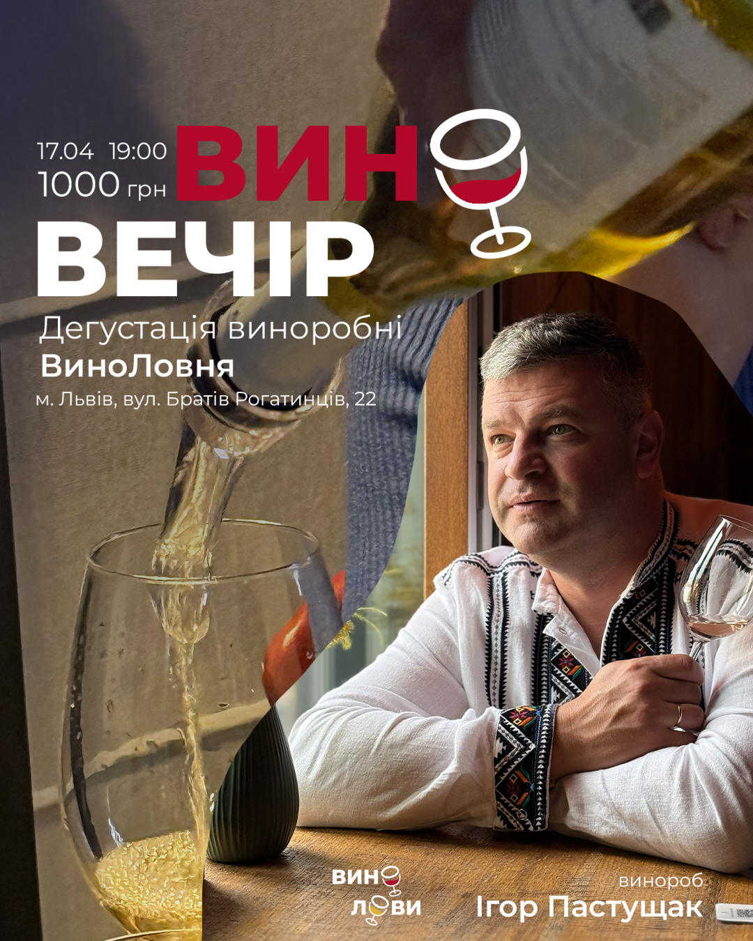 Already on April 17, the first tasting in the history of the winery! We will taste both young wines: petnat, 2 white and 1 rose from 2025 vintage, as well as three aged red wines from Odesa and Lviv grapes from 2023 and 2024.