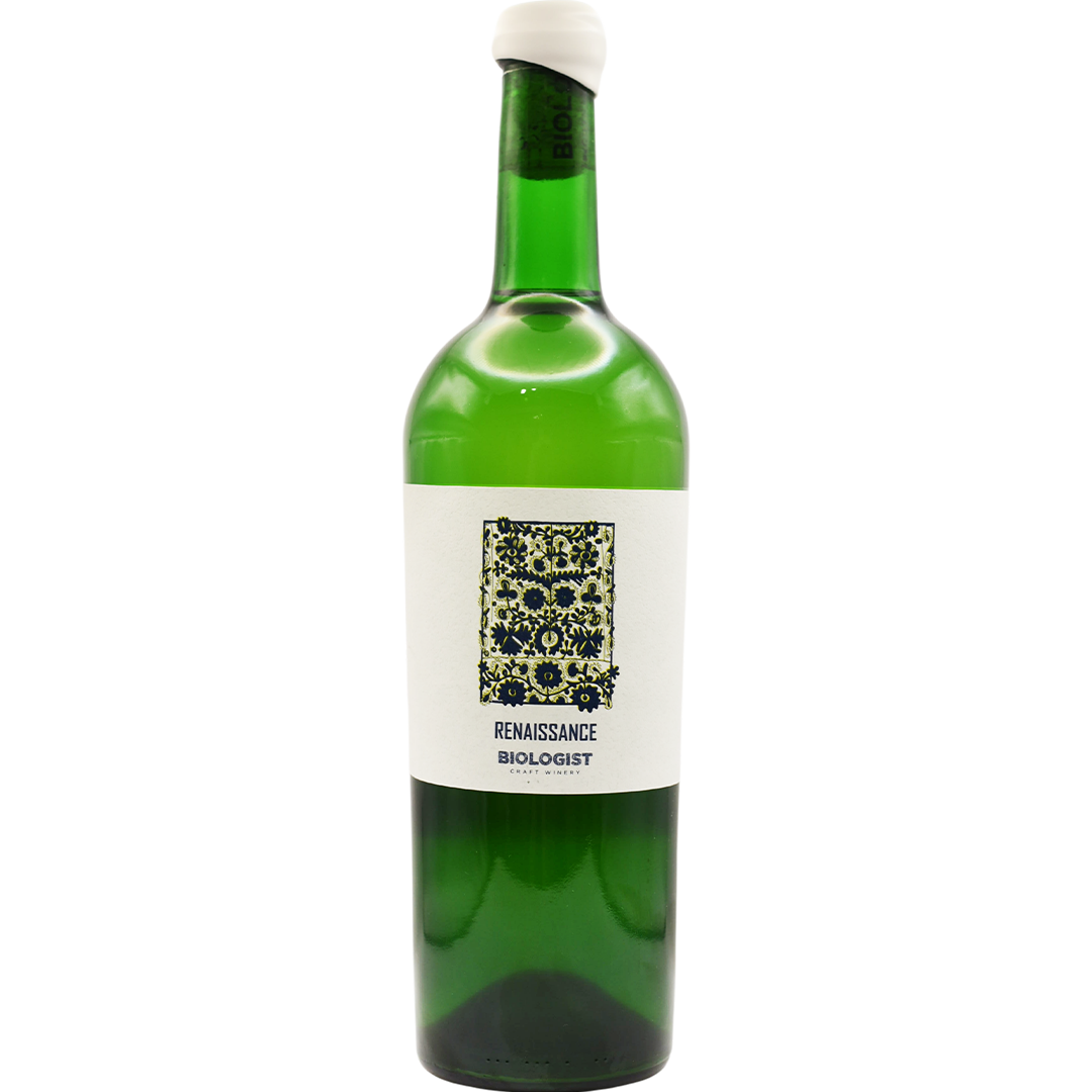 "Renaissance" by Biologist is a white dry blended unfiltered wine from Chardonnay and Aligote grapes, aged in oak barrels for 1 year, thanks to which it has a rich aroma, with tones of vanilla, ripe white fruits, quince, apple, pear with shades of elderflower, and a wonderful balanced palate with a buttery texture, tones of ripe stone and citrus fruits and good acidity.