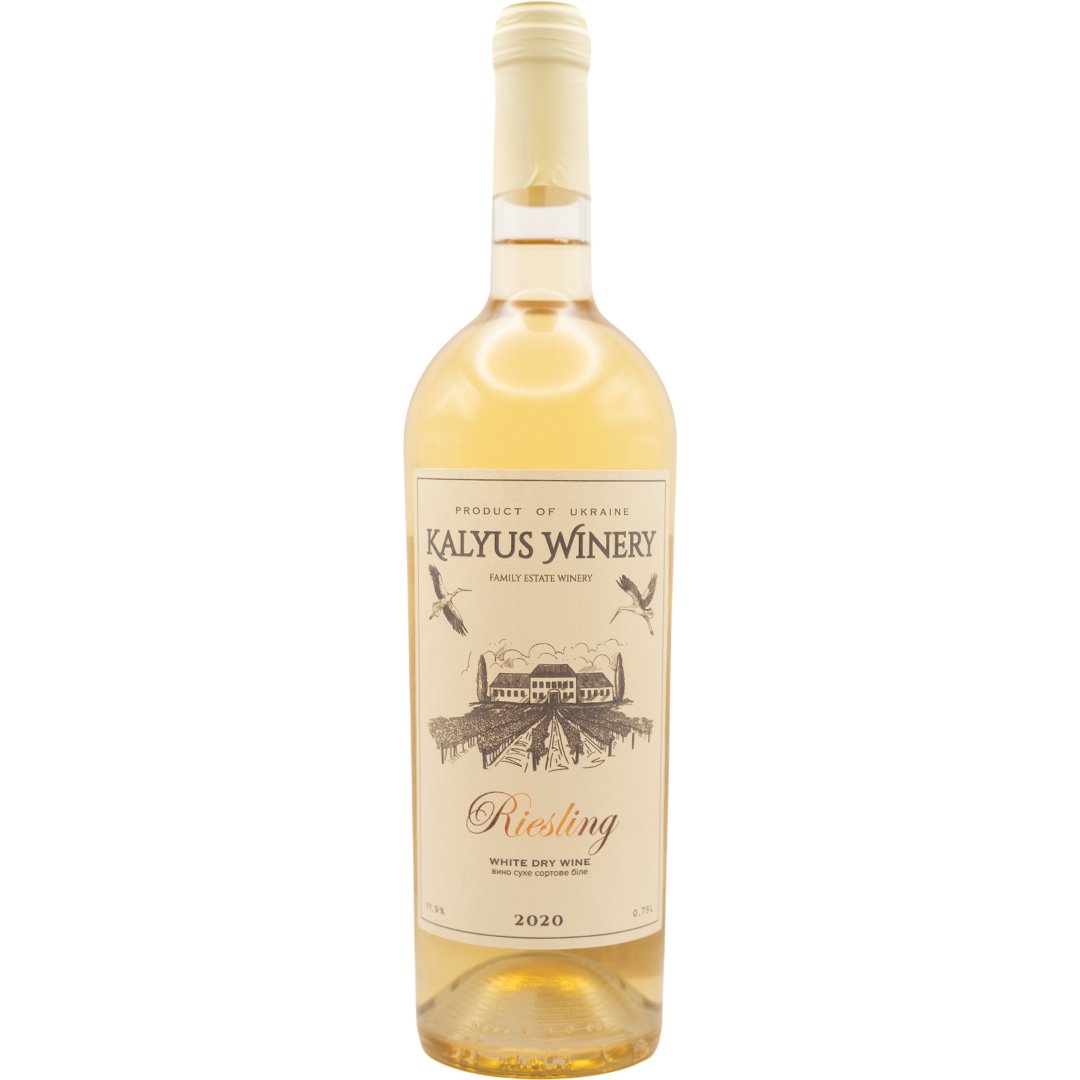 "Riesling" from the Kalyus winery white dry wine. Lime, flowers, apples and honey are preferred in aroma. The taste is fresh, with expressive acidity.
