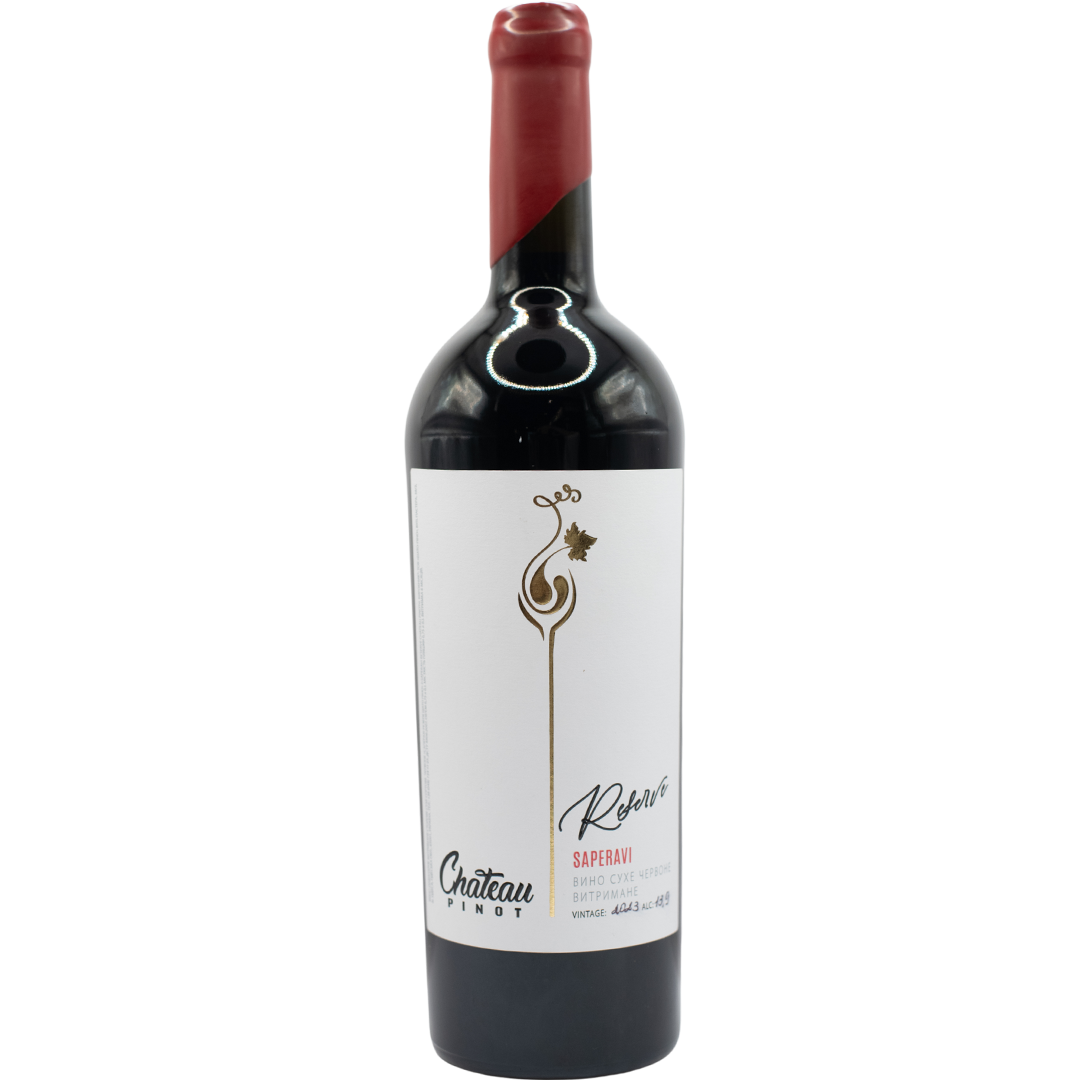 "Saperavi Reserve" from the winery Chateau Pinot is a red dry wine aged for at least 6 months in French oak. The aroma is complex, with a varied palette of black berries like blackcurrant, blackberry and blueberry, complemented by spices and tobacco. Taste is velvety, balanced, extractive, with notes of berries and tartness in the aftertaste. Perfect with veal steak or pork kebab.
