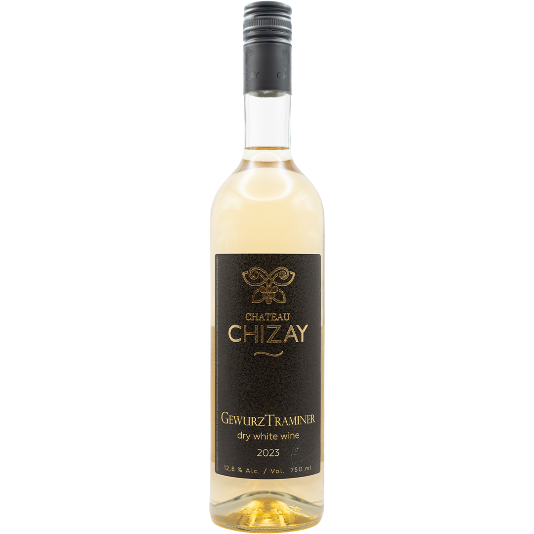 "Gewürztraminer" Chateau Chizay - a dry white wine created with a straw color with golden hues, a bright, varietal aroma of grapefruit, and a very dry and light taste. The wine is good for those who want to enjoy life and spend time with friends in a pleasant atmosphere.