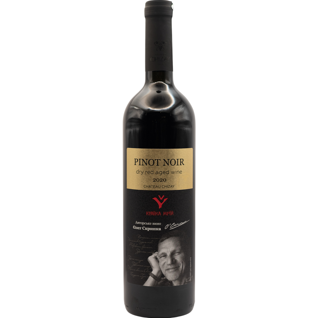 "Pinot Noir" from Chateau Chizay's Kraina Mriy edition is a red dry wine aged 12 months in an oak barrel, made from the Pinot Noir grape variety. The aroma is characterized by notes of ripe black and red berries and vanilla. On the palate, there are notes of ripe forest berries and spices with elegant tannins.