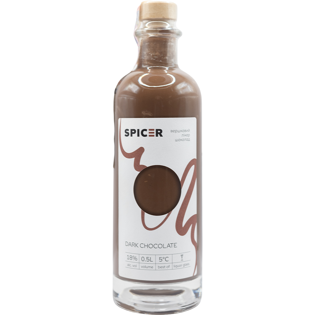 "Chocolate with ginger" cream liqueur from Spicer. Tender creamy black chocolate liqueur. The cult combination of spicy ginger and pleasant bitterness of cocoa beans. The rich chocolate-ginger taste of the liqueur is created by maceration from natural extradark chocolate and ginger root. After the process of infusion add natural cream and get the most gentle consistency with chocolate taste.