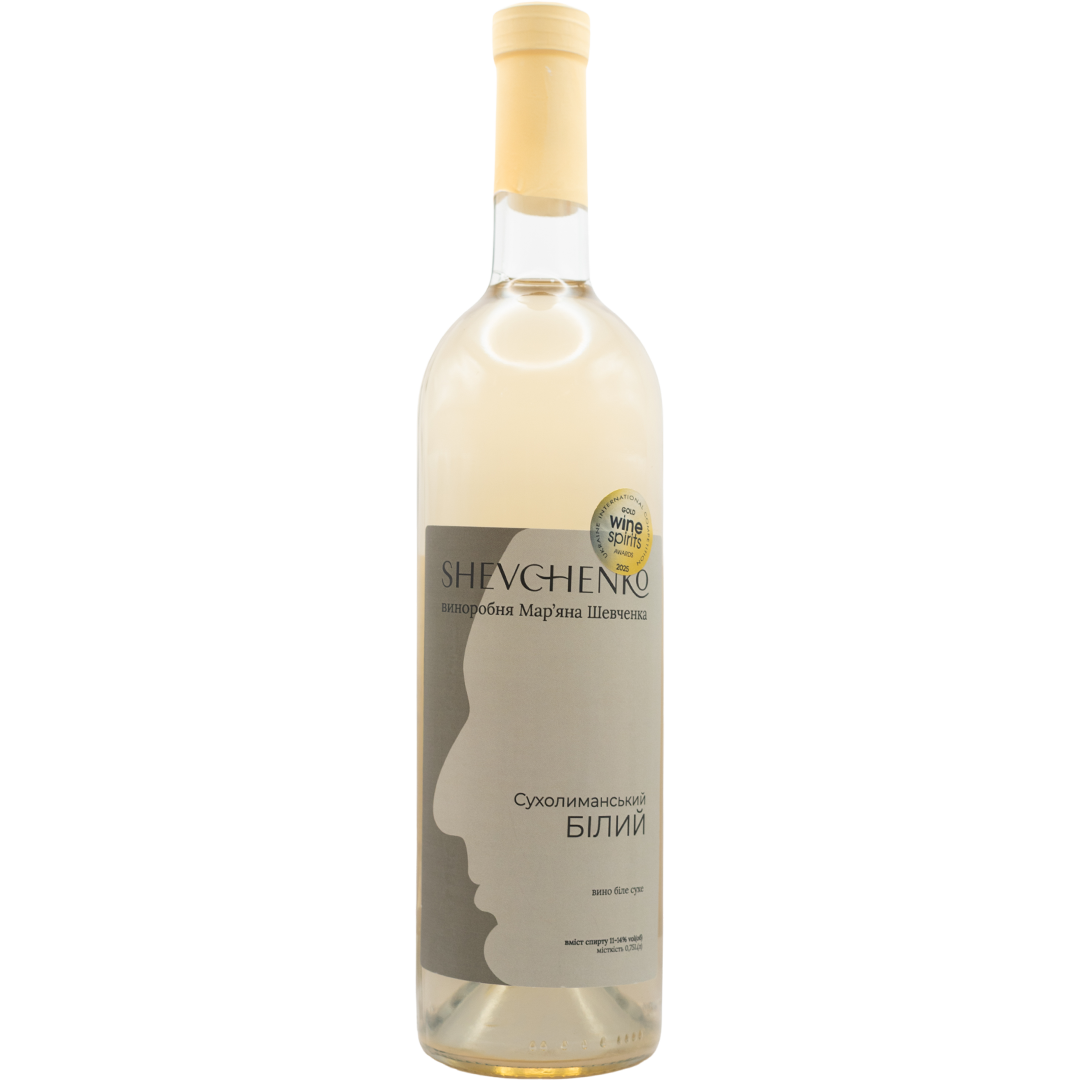 "Sukholymanskiy White" from the Shevchenko family winery is a white dry wine, the light aroma of which is expressed by notes of wild flowers and white peach. The taste of the wine is fresh, light, with notes of lime and quince. It is best suited for light salads, fruits or young cheeses.
