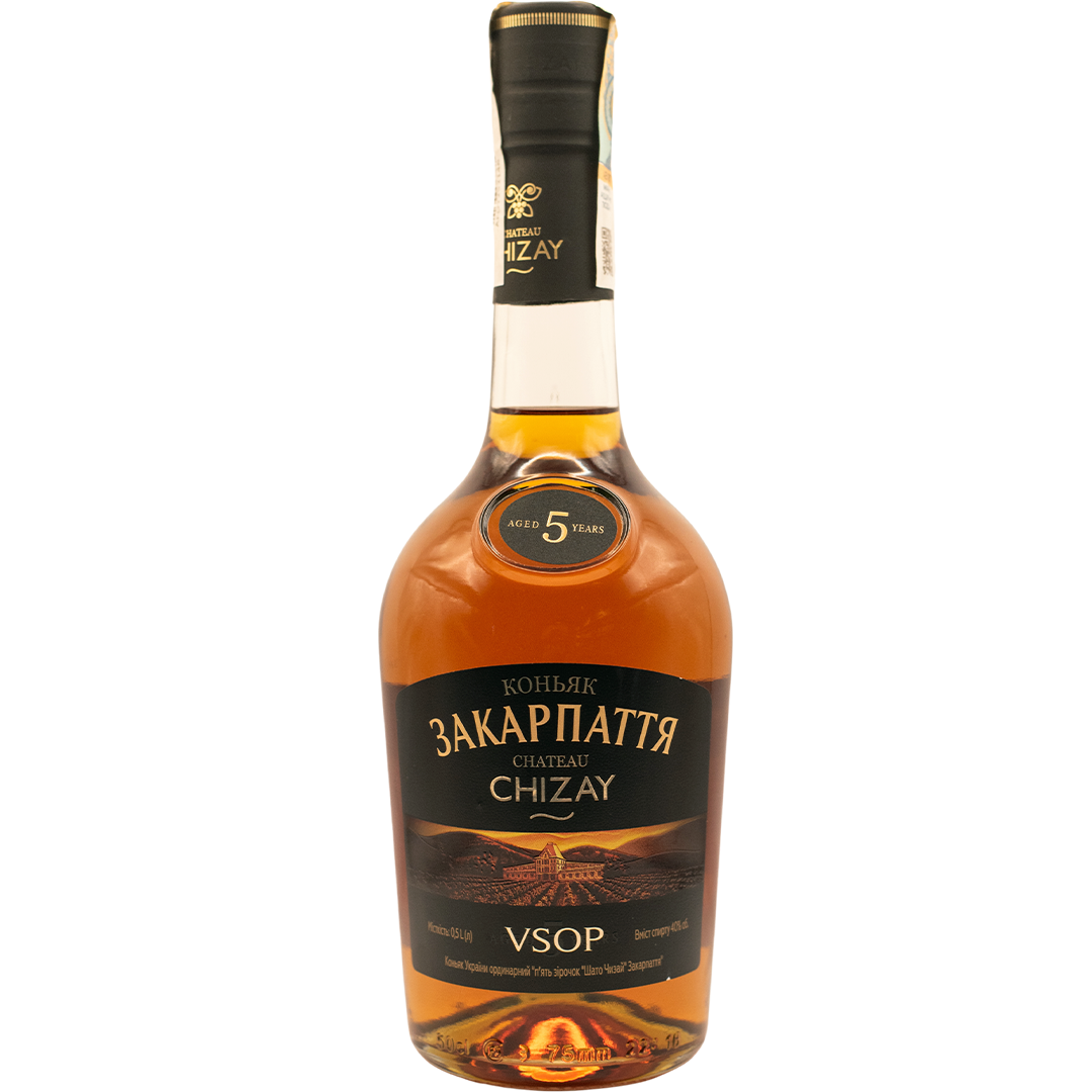 Ukrainian cognac ‘Palanok Zakarpattia 5 Years’ from Chateau Chizay is a strong drink with a bright amber colour. It has a complex aroma with hints of dried fruit, figs, dates, vanilla and roasted nuts, developed over 5 years of ageing cognac spirits in noble oak. The aromatic range unfolds in a rich and balanced taste that lasts a long time. Recommended to serve unchilled. Goes well with desserts and fruit.