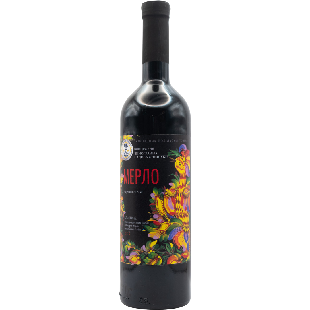 "Мерло" від Виноградної Садиби Онищуків - це червоне сухе вино. Аромат насичений нотами чорних ягід, смородини та сливи. Смак насичений, із м'якими танінами. Найкраще підійде до страв з яловичини, чи томатної пасти.