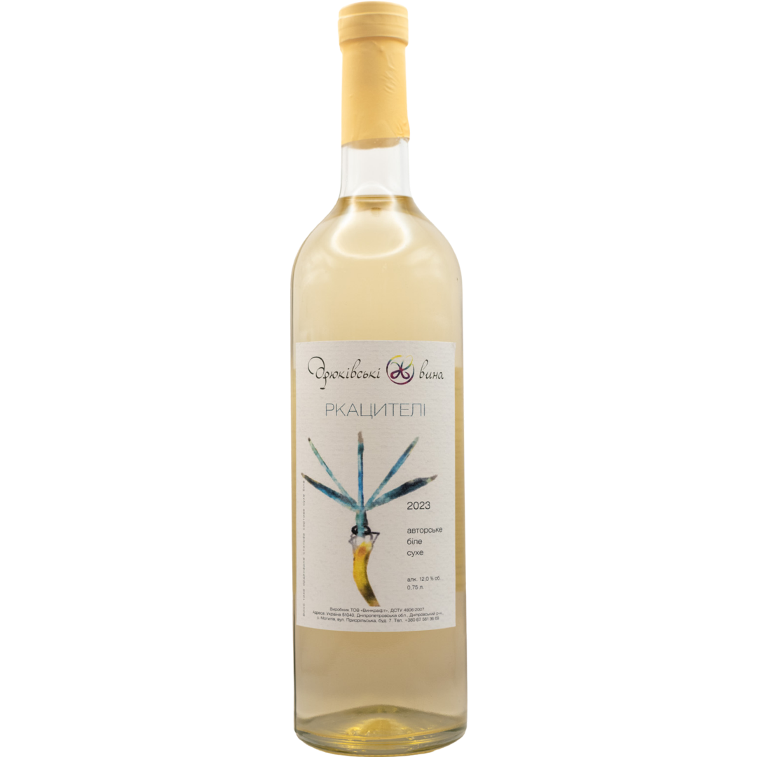 "Ркацителі" від виноробні Дрюківські вина - це біле сухе вино. Аромат вина насичений тонами польових квітів із медово-пряними нотами. Смак м'який, свіжий, з довгим квітково-медовим посмаком. Найкраще підійде до риби, сирів, овочевих салатів, морепродуктів або до легких десертів.