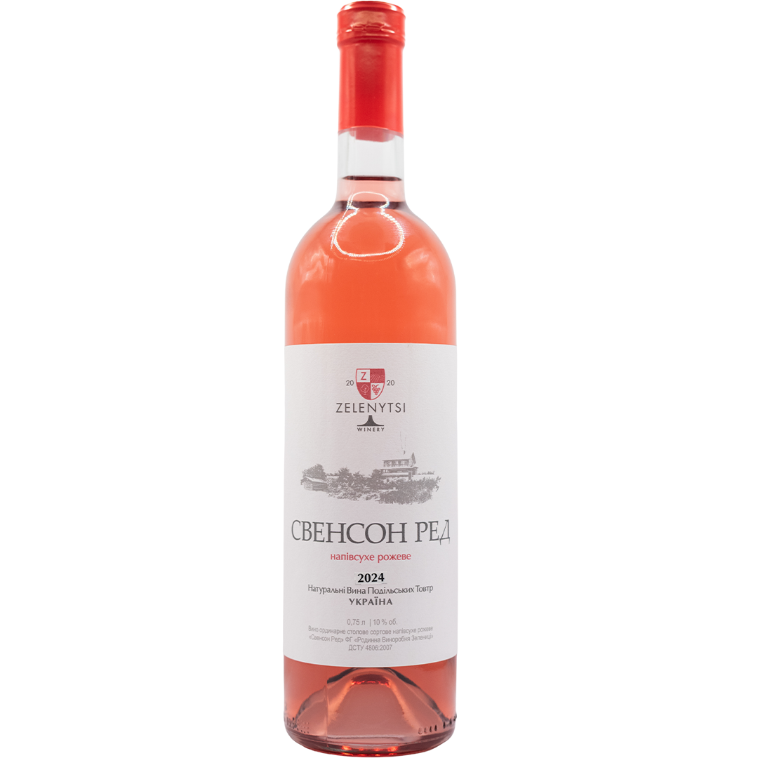 "Свенсон Ред" від сімейної виноробні Зелениці - це рожеве напівсухе вино, виготволене із столового сорту винограду. В ароматі має виражені ноти суниці, та інших червоних ягід. В смаку м'яке та яскраве, із приємною солодкавістю, в посмаку елемент ягідного сорбету. Найкраще підійде до фруктів чи десертів, або самостійно.